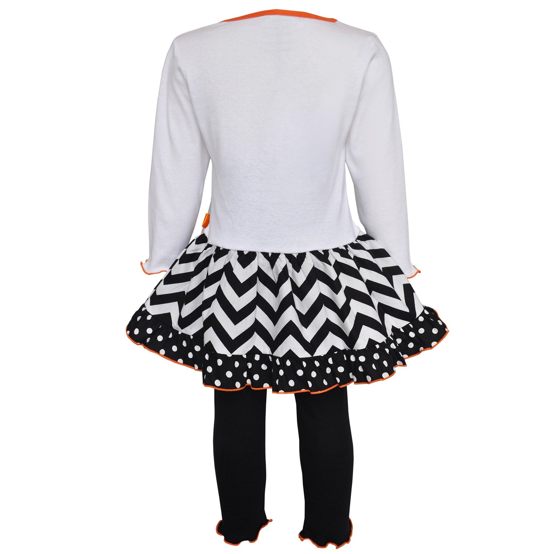Put a smile on your little trick-or-treater's face with this adorable outfit. She's sure to love the cute pumpkin-and-kitten applique on the top, and the attached skirt with an orange bow adds a bit of fun flair. The included knit leggings help keep her warm on chilly October nights.