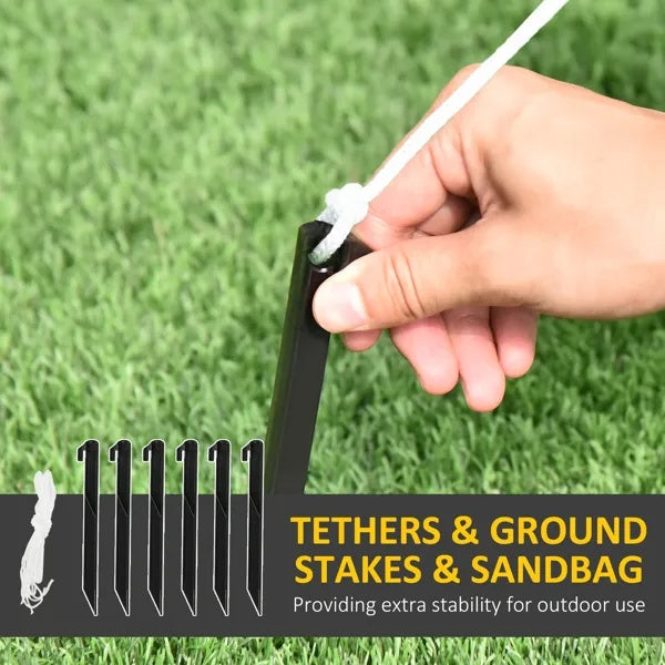- - Includes six stakes, two drawstrings, and a sandbag to help keep it anchored on windy nights